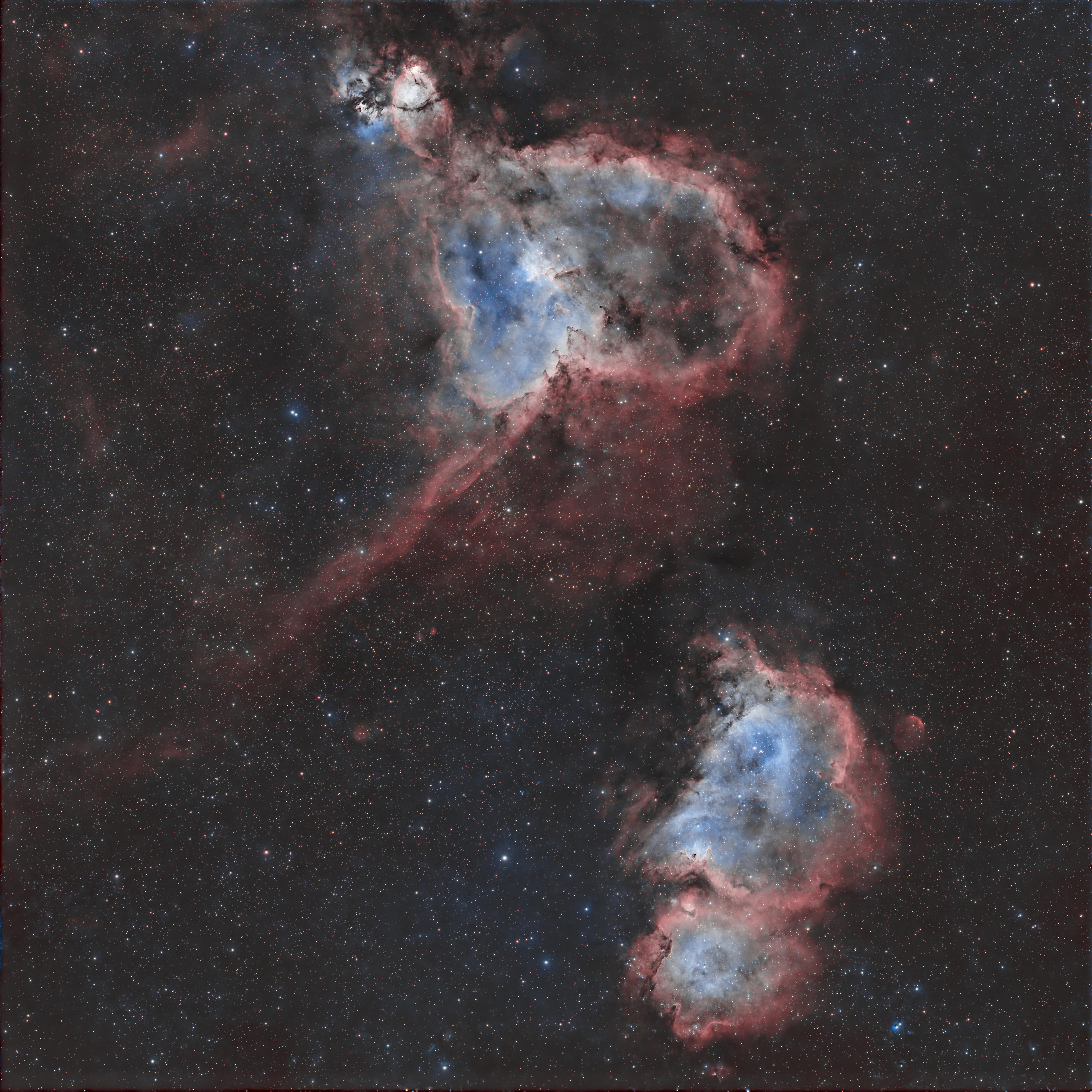 IC 1805 (also known as the Heart Nebula or by its acronym W4) is a diffuse nebula associated with an open cluster, visible in the constellation Cassiopeia, near the border with Camelopardalis. The Heart Nebula observed in 2021