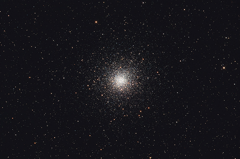 M 10 (also known as NGC 6254) is a globular cluster located in the constellation of Ophiuchus. M10 is not easily identified because of its particularly isolated position, far from bright stars; its position is located about 10° east of the star ε Ophiuchi. Thanks to its magnitude of 6.6, the cluster is easily visible with binoculars. M10 was discovered by Charles Messier in 1764, who however did not recognize it as a cluster and described it as follows: "A starless nebula in the belt of Ophiuchus, near the 30th star of this constellation...This nebula is beautiful and round, can only be seen with difficulty in an ordinary three-foot telescope." It was resolved into stars for the first time by William Herschel.