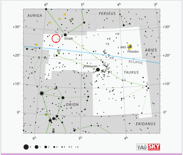 | Coordinates | AR: 05h 40m - Dec: +27° 00′ | |||