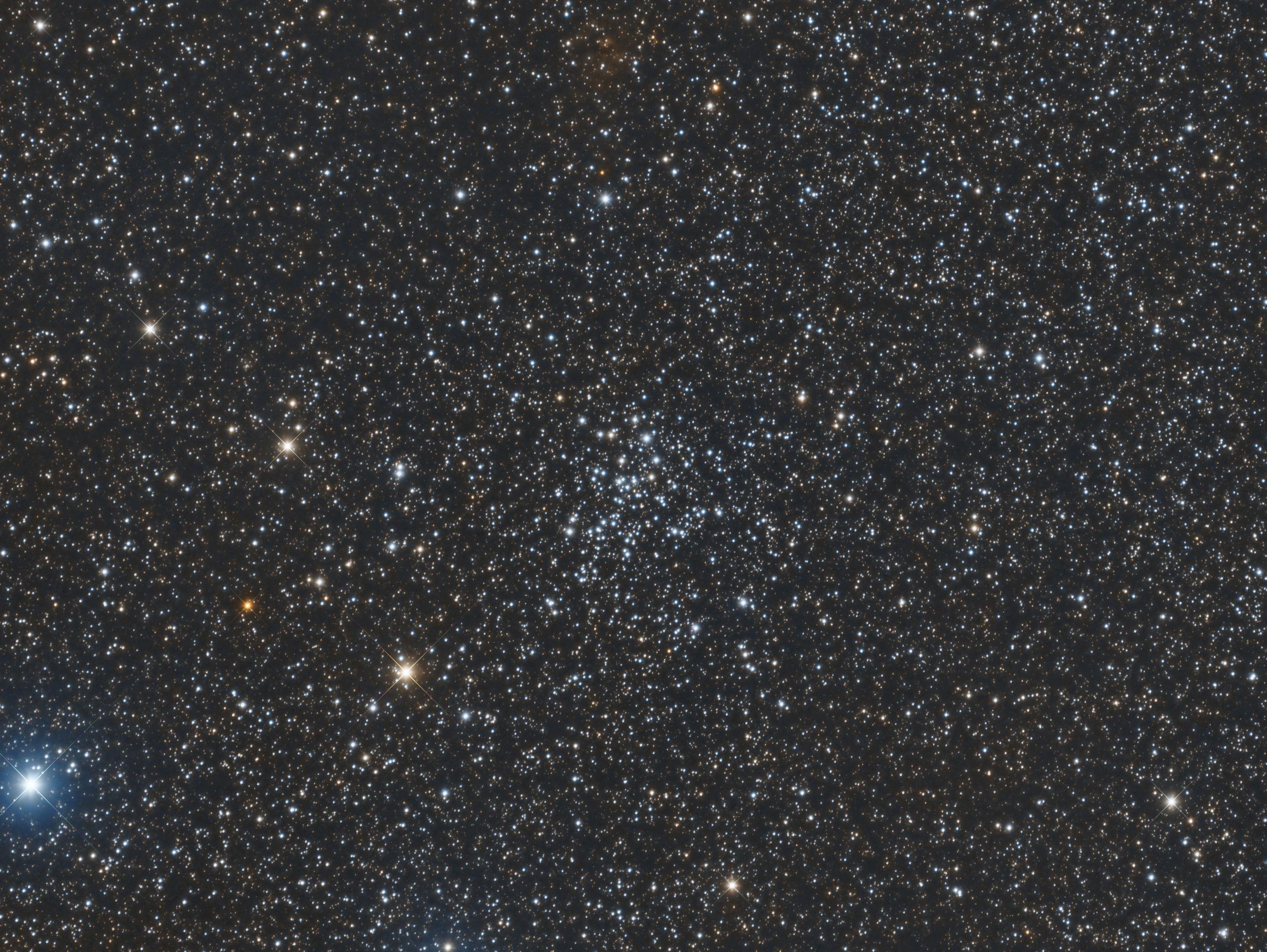 | Comment | NGC 1528 is an open cluster in the constellation Perseus. It was discovered by William Herschel in 1790. It is located in the north-eastern part of the constellation, just under 3 degrees north of μ Persei. Less than 1.5° to the southeast is the open cluster NGC 1545 (m = 6.2). The NGC 1528 is clearly visible with 10x50 binoculars. 165 stars are recognised as members of NGC 1528, the brightest of which has apparent magnitude 8.7.