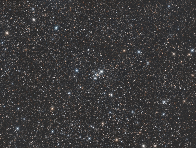 | Comment | Messier 103 (also known as M103, or NGC 581) is an open cluster where a few thousand stars formed in the constellation Cassiopeia. This open cluster was discovered in 1781 by Charles Messier's friend and collaborator Pierre Méchain. It is one of the most distant open clusters known, with distances of 8,000 to 9,500 light-years from the earth and ranging about 15 light-years apart. There are about 40 member stars within M103, two of which have magnitudes 10.5, and a 10.8 red giant, which is the brightest within the cluster. Observation of M103 is generally dominated by the appearance of Struve 131, though the star is not a member of the 172-star cluster. M103 is about 25 million years old.
