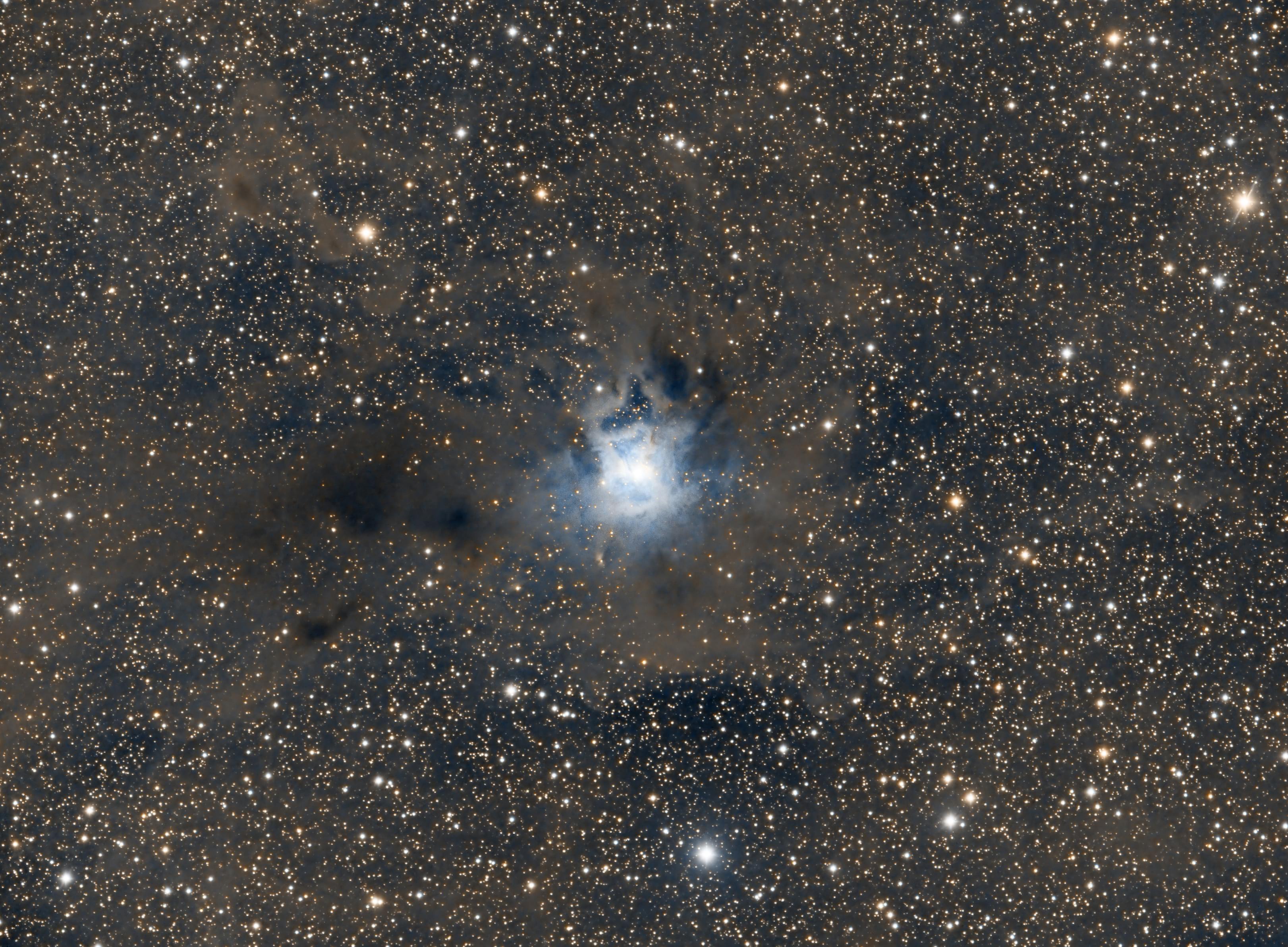 | Comment | The Iris Nebula, also known as NGC 7023 and Caldwell 4, is a bright reflection nebula and Caldwell object in the constellation Cepheus. NGC 7023 is actually the cluster within the nebula, LBN 487, and the nebula is lit by a magnitude +7 star, SAO 19158. It shines at magnitude +6.8. It is located near the Mira-type variable star T Cephei, and near the bright magnitude +3.23 variable star Beta Cephei (Alphirk). It lies 1,300 light-years away and is six light-years across.