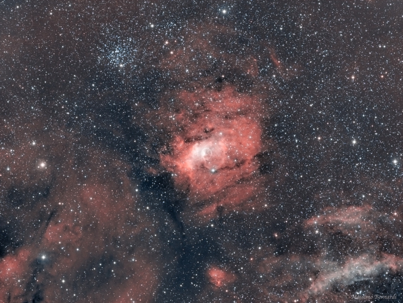 | Comment | NGC 7635, also known as the Bubble Nebula, Sharpless 162, or Caldwell 11, is an H II region emission nebula in the constellation Cassiopeia. It lies close to the direction of the open cluster Messier 52. The "bubble" is created by the stellar wind from a massive hot, 8.7 magnitude young central star, SAO 20575 (BD+60°2522). The nebula is near a giant molecular cloud which contains the expansion of the bubble nebula while itself being excited by the hot central star, causing it to glow. It was discovered in 1787 by William Herschel. The star BD+60°2522 is thought to have a mass of about 44 M☉.