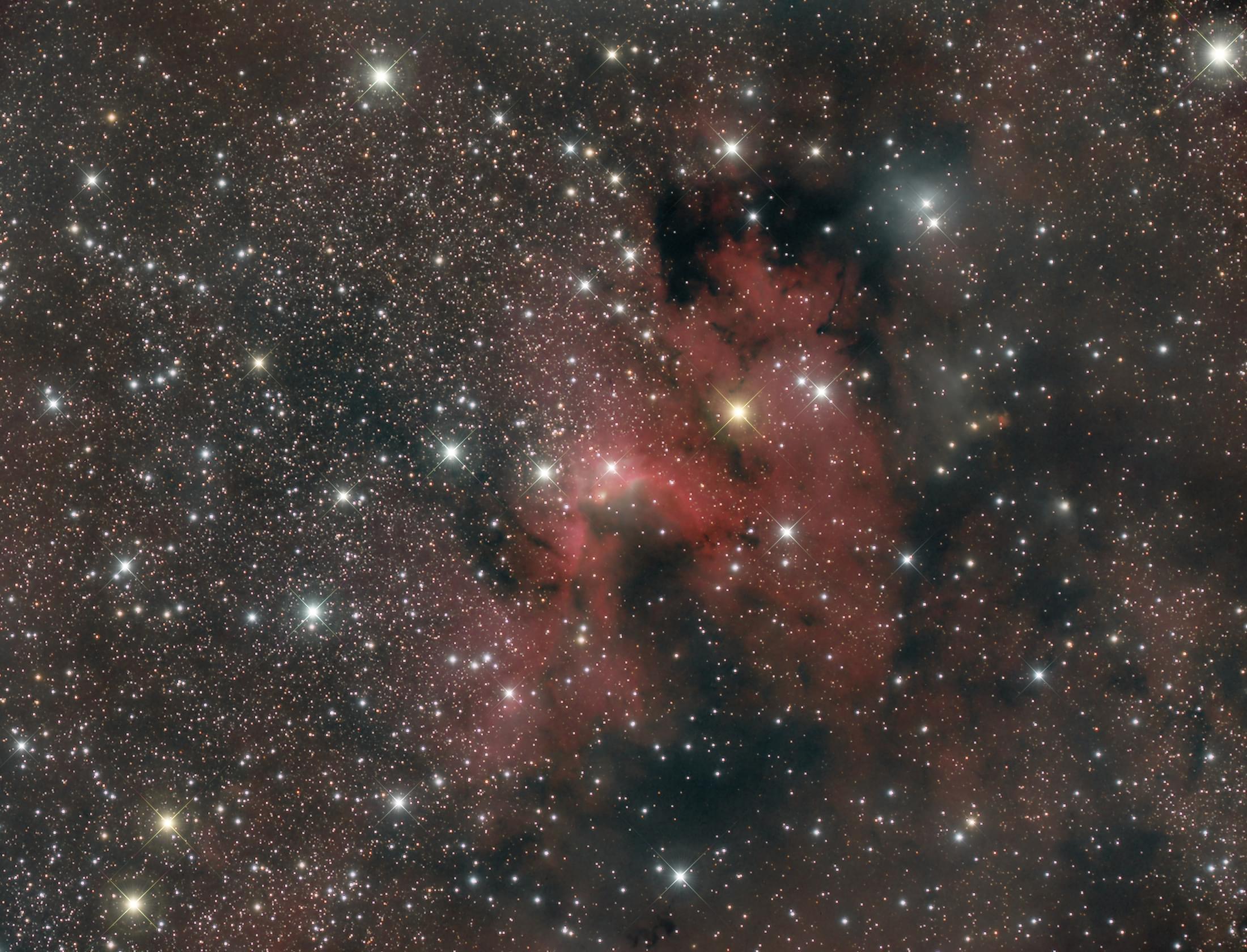 | Comment | SH2-155 is an emission nebula part of large nebula complex including emission, reflection and dark nebulosity. It is a inozed H-II region with ongoing star formation. Famous astronomer Patrick Moore called it "Cave Nebula" . Apparent ma 7.7 and apparent size 50' x 30'. It's 2400 light-years away.
