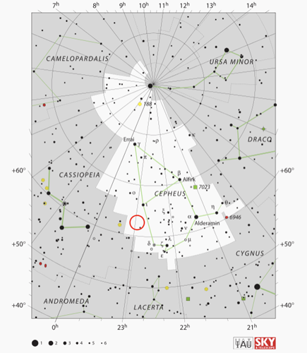 | Coordinates | AR: 22h 57m 17.4sec - Dec: +62° 28' 33.4" | |||