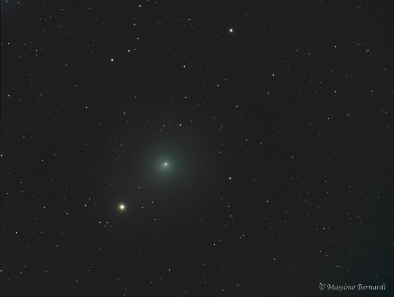 | Comment | 46P/Wirtanen is a small short-period comet with a current orbital period of 5.4 years. It was the original target for close investigation by the Rosetta spacecraft, planned by the European Space Agency, but an inability to meet the launch window caused Rosetta to be sent to 67P/Churyumov–Gerasimenko instead. It belongs to the Jupiter family of comets, all of which have aphelia between 5 and 6 AU. Its diameter is estimated at 1.2 kilometres (0.75 mi). 46P/Wirtanen was discovered photographically on January 17, 1948, by the American astronomer Carl A. Wirtanen. The plate was exposed on January 15 during a stellar proper motion survey for the Lick Observatory. Due to a limited number of initial observations, it took more than a year to recognize this object as a short-period comet. |
